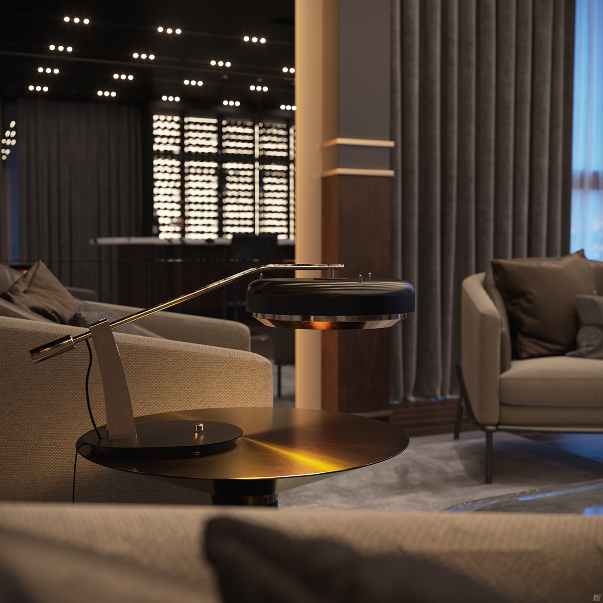 The mid-century Mirage table lamp is a modern lighting fixture that embodies the glamorous modern principles of minimalism. Handmade in brass with an opaque black lacquer, this luxurious lighting design captures the retro-futuristic vision of Space Age design that Draga & Aurel wanted to transmit with the lighting family. It can easily serve as a statement piece for your living room, office bedroom, and even entryway.