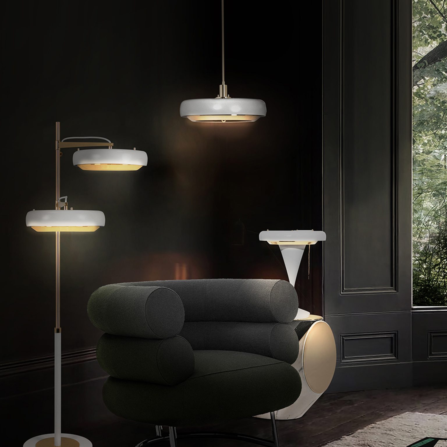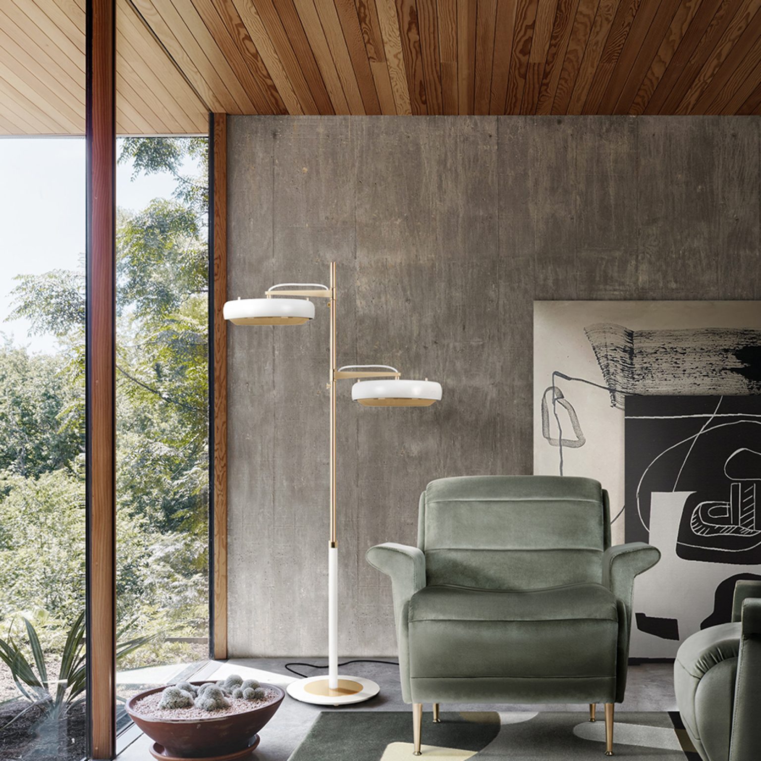 Carter floor lamp is the lighting piece your modern home decor has been looking for. Inspired by the discoveries of the universe, Carter modern lamp has all the details to be a memorable lighting piece. This bespoke design is handmade in brass, and it has two shades with a soft casting light that will transform any residential or hospitality project! Create the perfect ambiance with this mid-century modern lighting.