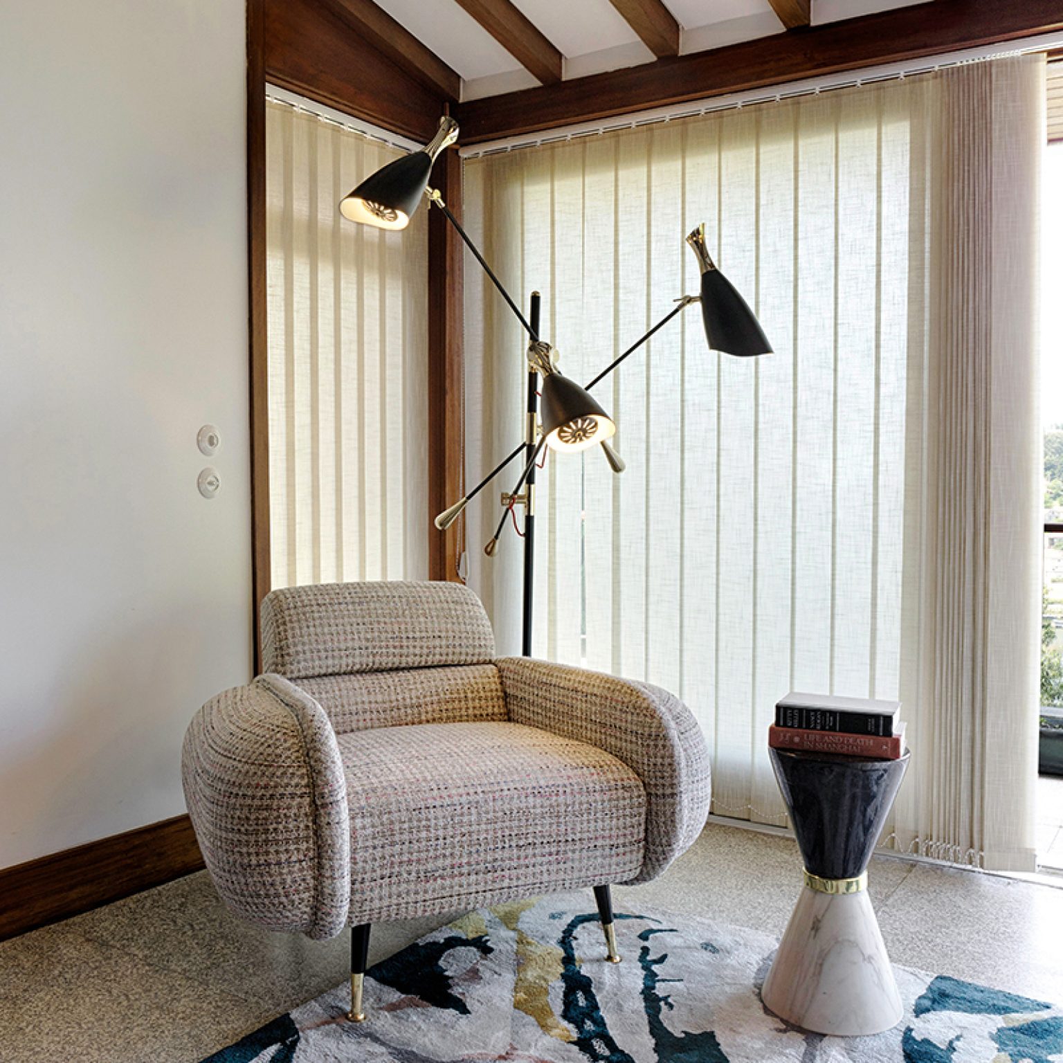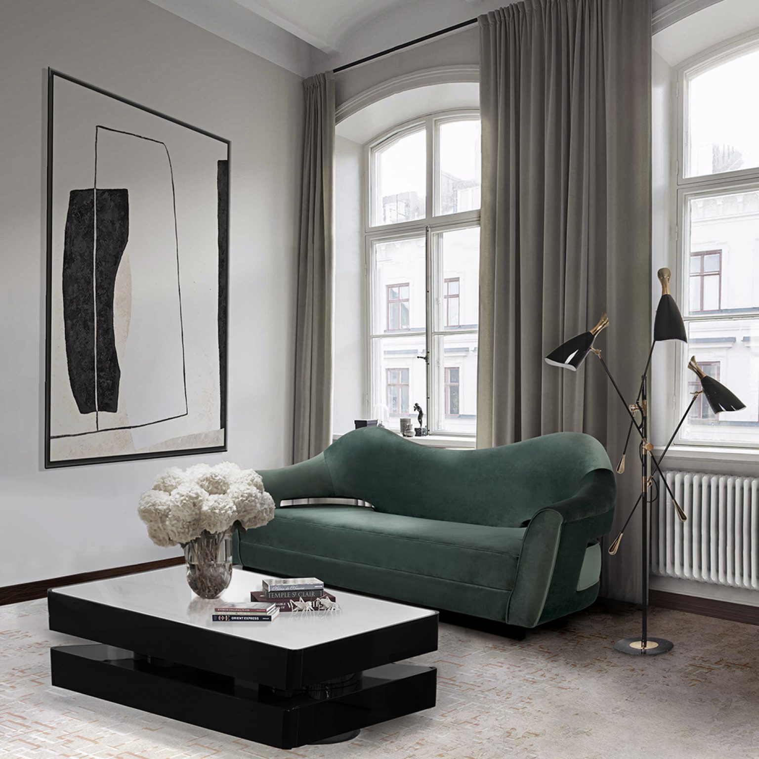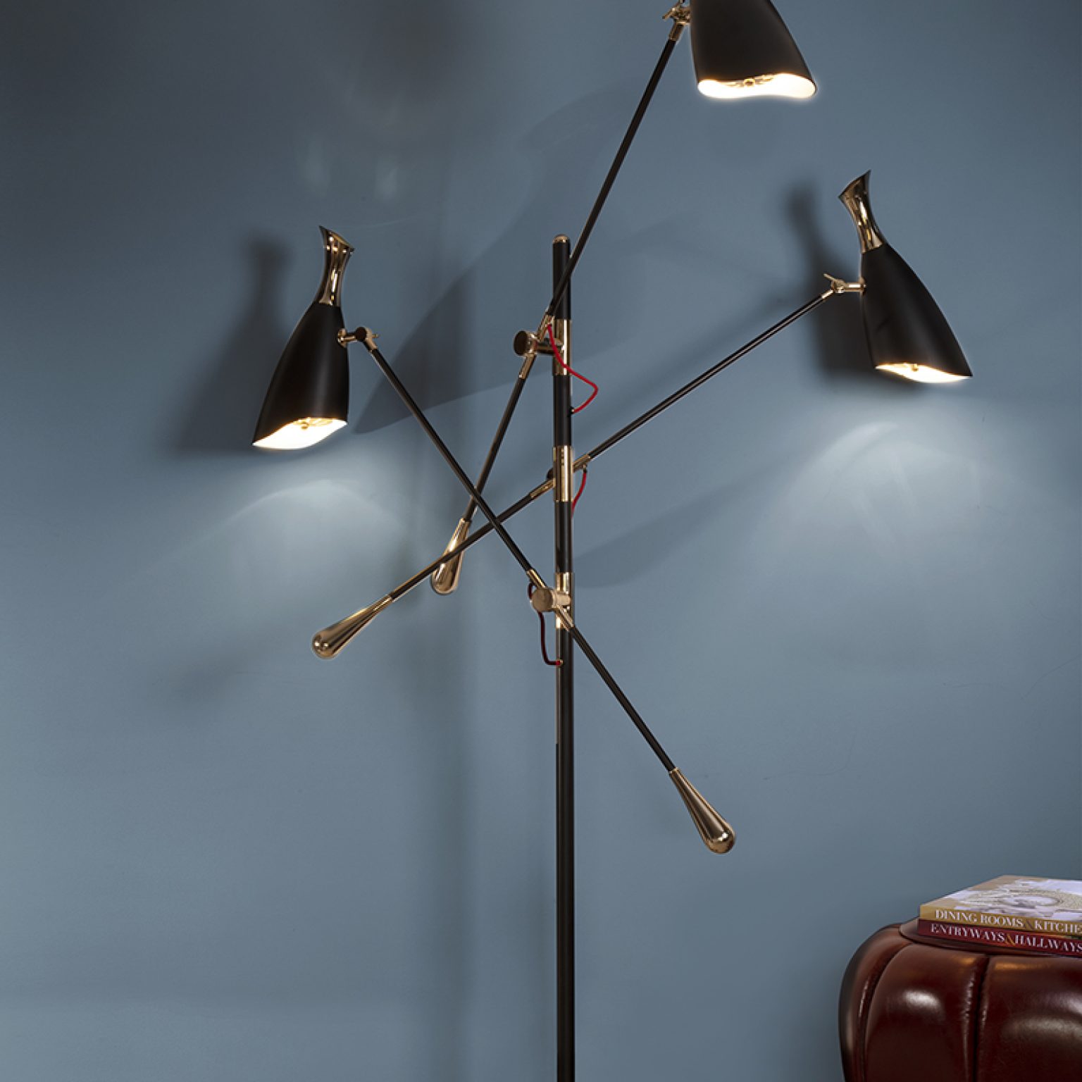 Duke Ellington has been an inspiration to the world to many artists and musicians. Therefore, DelightFULL’s designers have decided to pay a tribute to this iconic jazz musician and create Duke floor lamp. With a short silhouette and a single swing, Duke floor lamp is a retro-styled accessory for every single mid-century modern interior design. Each cone lamp shade is conducted by a brass arm and its counter-weight.