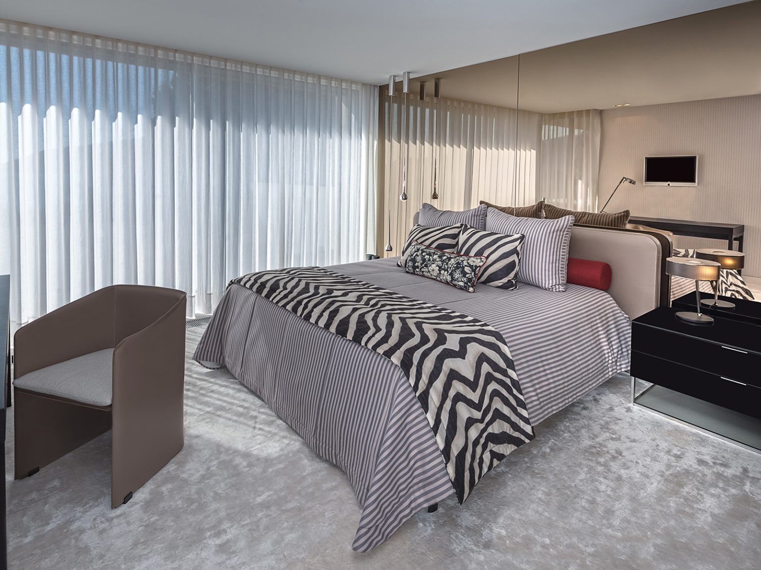Turner is a large table lamp handmade in brass and Aluminium. The body has a gold plated finish, while the shade was lacquered a black matte on the outside and a gold powder paint on the inside, so as not to create an uncomfortable glaze for the user. Its five movable arcs can be rotated into the desired position, which gives this black table lamp a sense of fun, and allows you to create the best composition to fit your modern home decor.