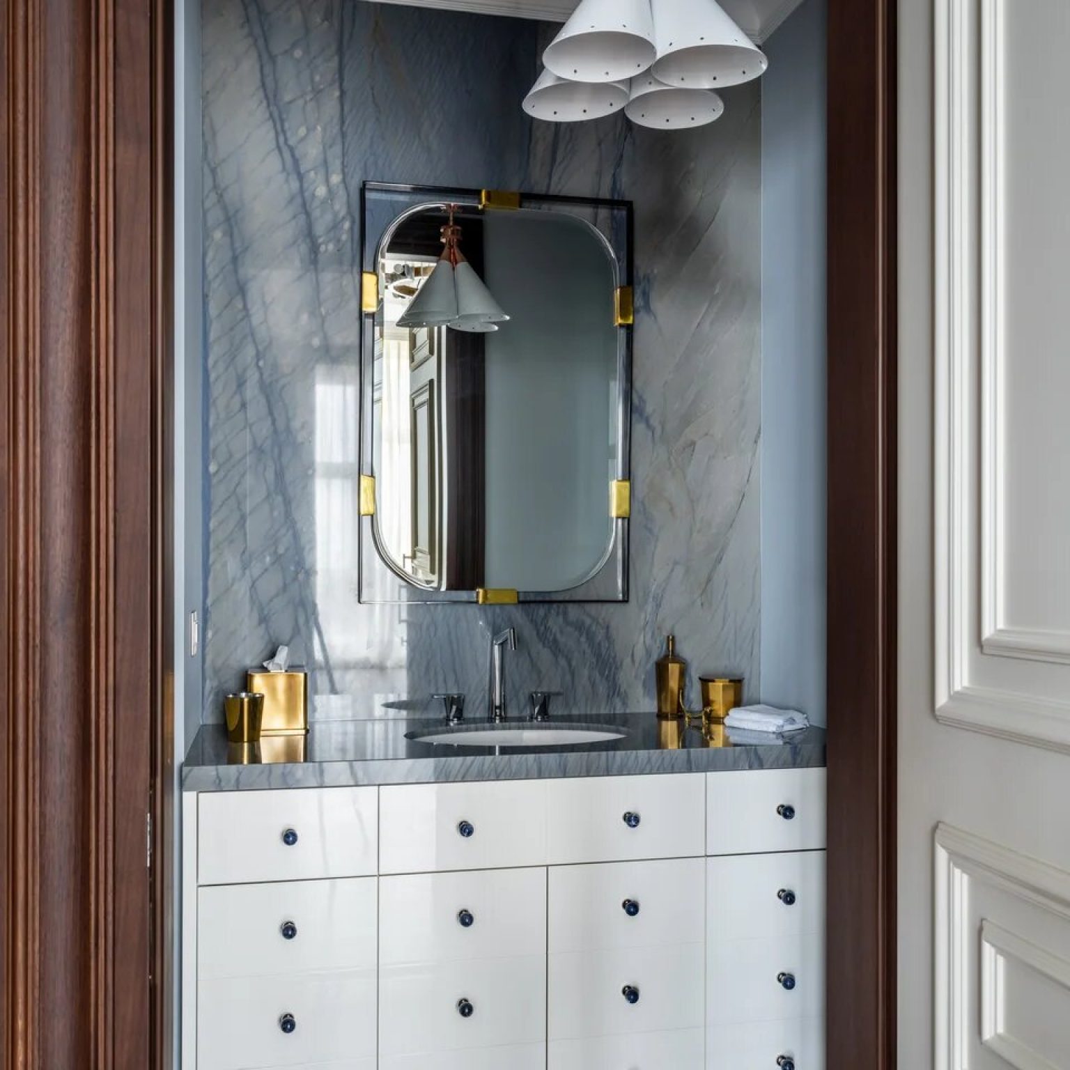 The designer Irina Grave has worked through the vast space in detail, with love, showing a high level of skills. When the technical problems were over, the designer plunged into creativity. The project’s dining room is one of the standouts of the entire design. DelightFULL’s beautiful Brubeck Round Suspension transmits a classic retro chic feel thanks to its high-quality materials, making this sophisticated dining ambiance one of kind.