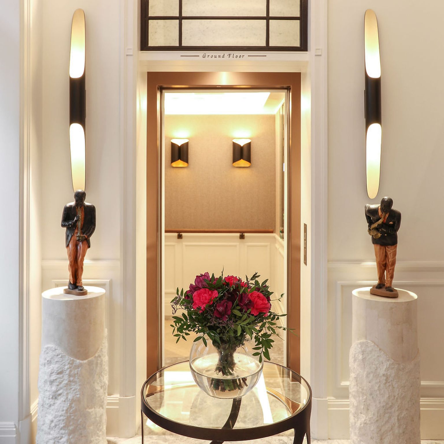 While the architectural side has been preserved for all of these years, the old interiors were completely stripped away and replaced with a brand new design tha reinterprets the key traditional principles, while at the same time introduces a new interplay of classical and contemporary design styles. The bespoke apartments were decorated with some of the best high-end furniture designs and lighting pieces, including DelightFULL’s iconic Coltrane wall lamp.