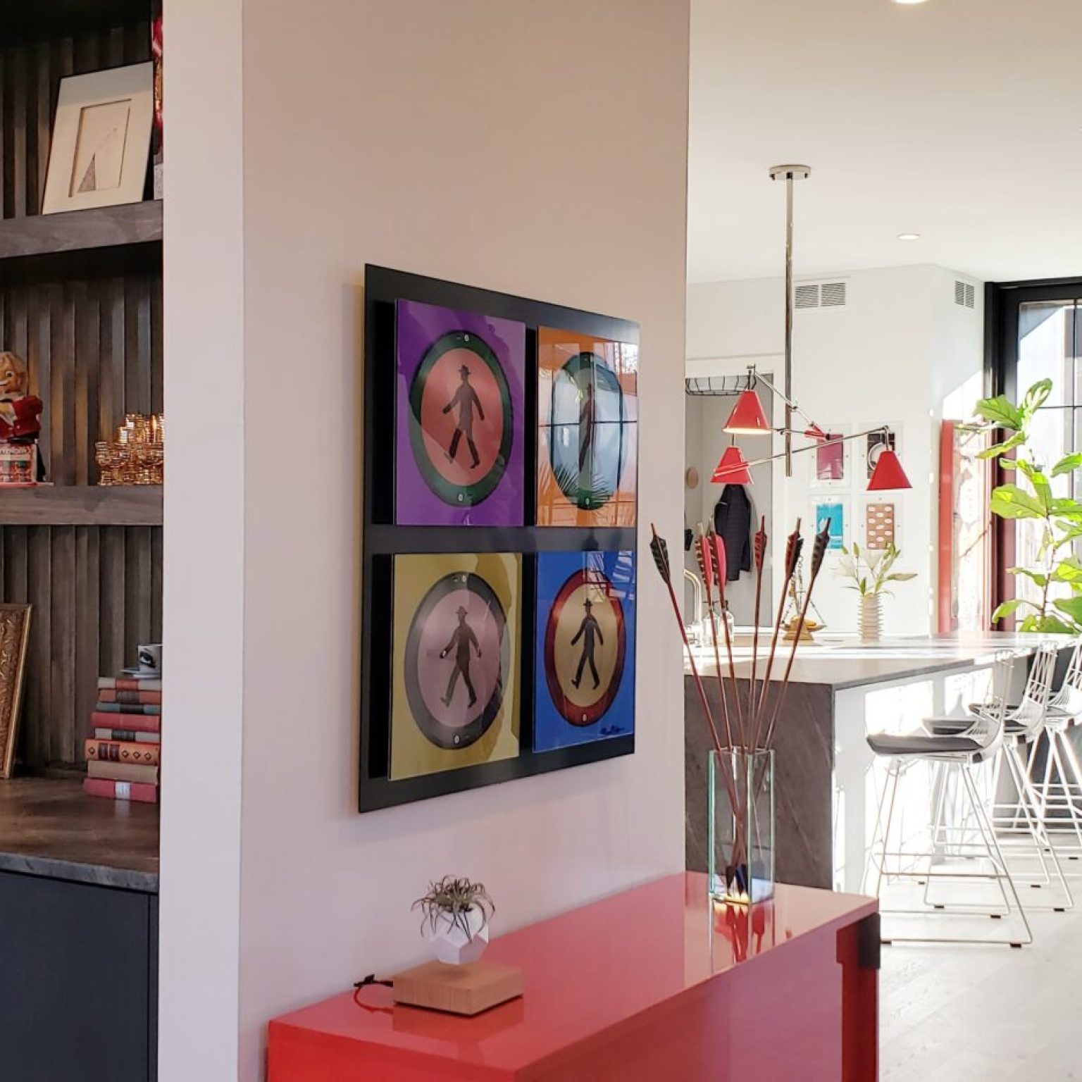 Featuring strong colors and unique lighting, renowned interior designer, Meg Miller, has created what can be called the perfect kitchen project that every design lover would wish to have in their homes. Like her other work, this unique project “sings, “thanks to the creative color palette that Meg has chosen and (of course) the star of the show: DelightFULL’s Sinatra Suspension lighting fixture.