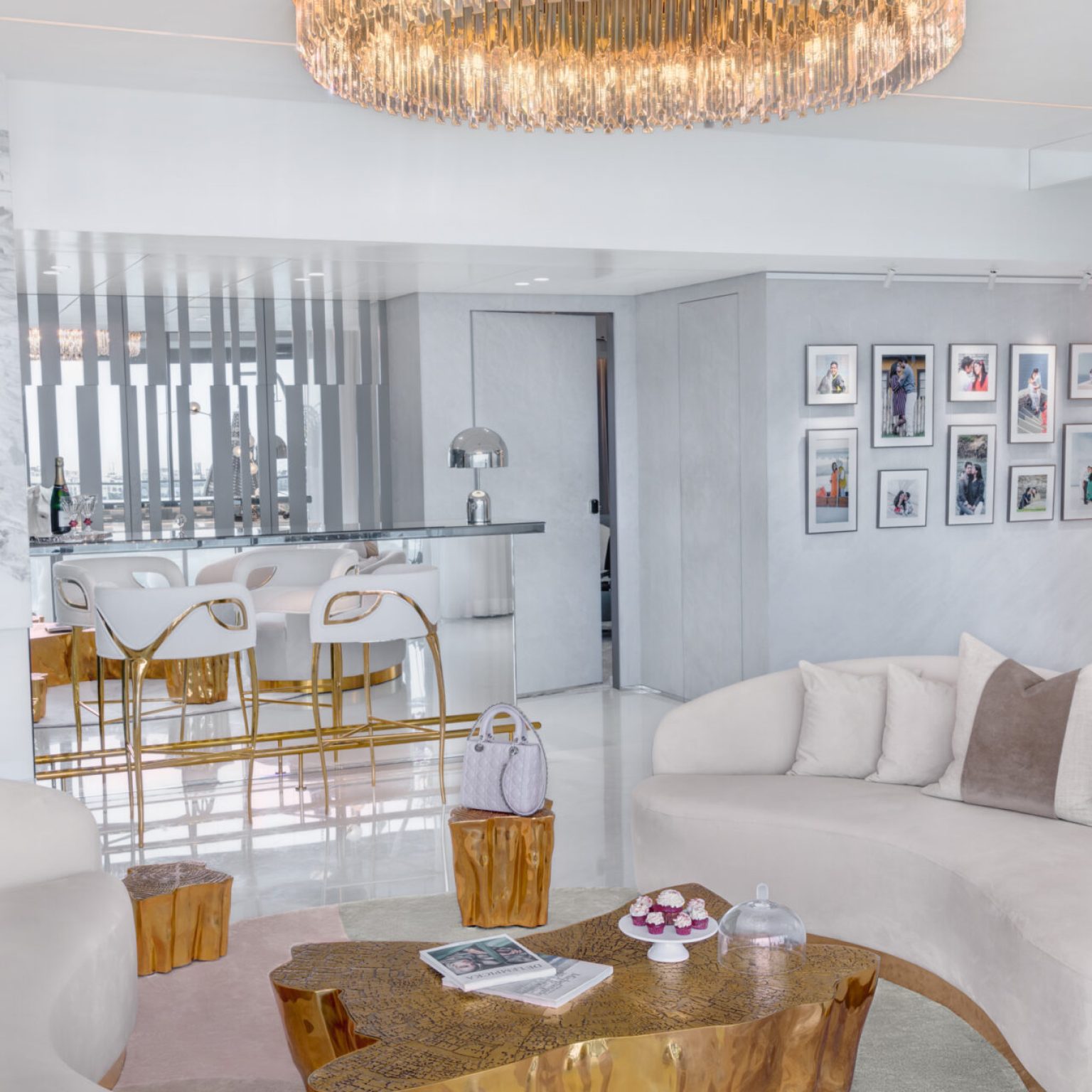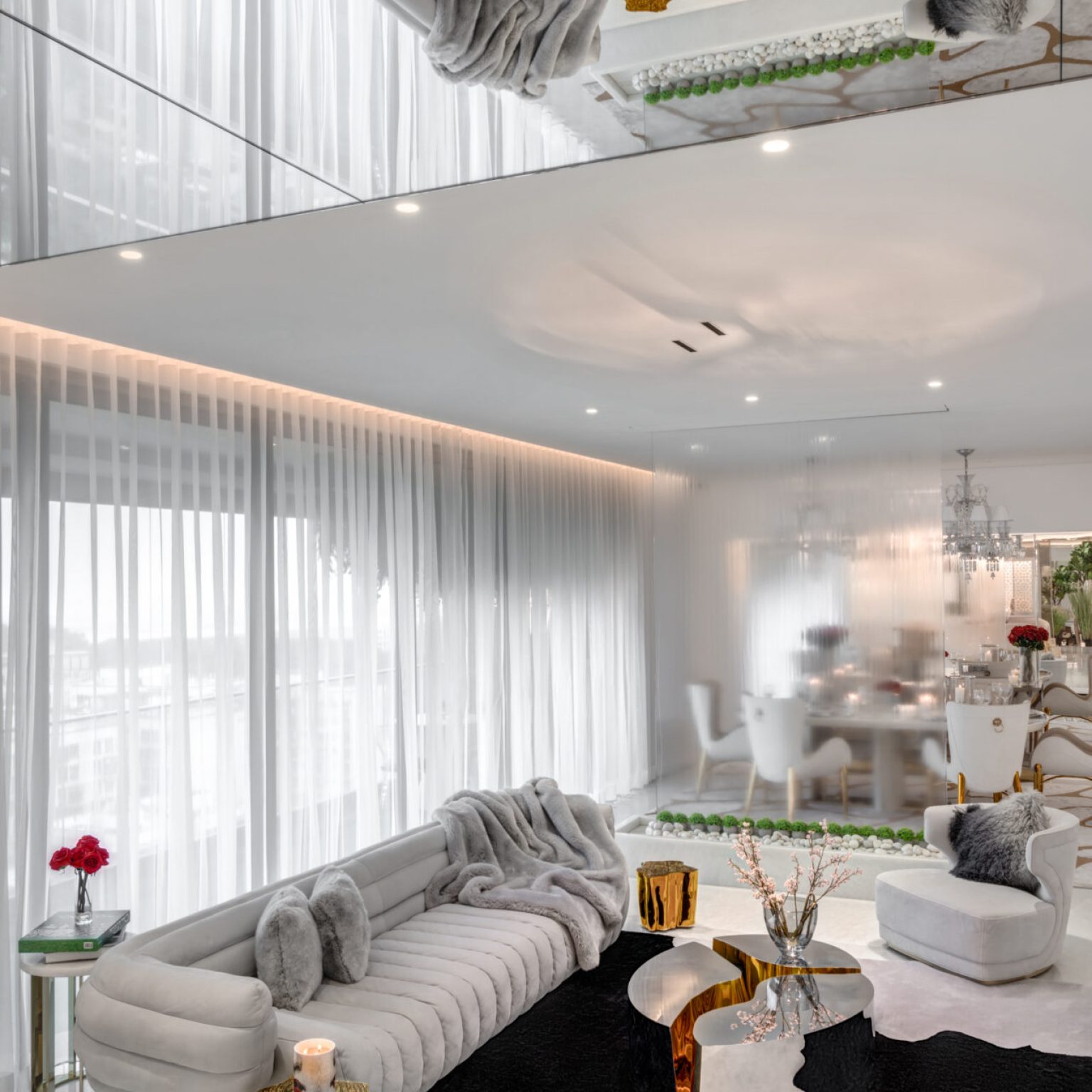 A beautiful design project, there is an abode of luxury brands and yet perfectly coexists without overpowering each other. A feat hard to achieve, this project has furniture designs from top designer brands such as DelightFULL, Boca do Lobo, Koket, among many others. Every corner of this reflective residence and every art piece in it, tells a story. The client wanted to create white decor, with reflective surfaces to give the rooms a bigger feel. Exquisite material and unique touches in the furniture design bring a sense of glam into the luxury house.